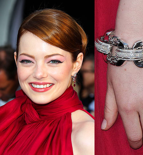 Эмма проявила смелость — выделила зеленоватые глаза розовыми тенями. А вот маникюр актриса сделала натурального колера.